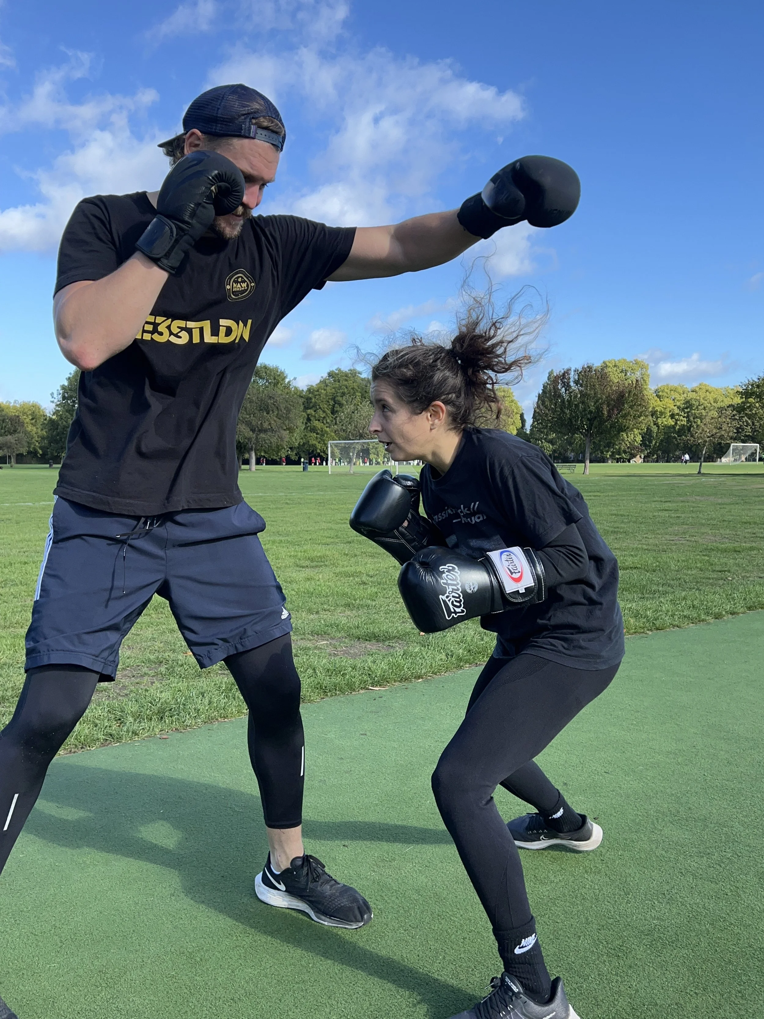 Small groups, open space, and no shouty bootcamp culture. Just real boxing fundamentals taught properly outside, with room to breathe, focus, and enjoy training.